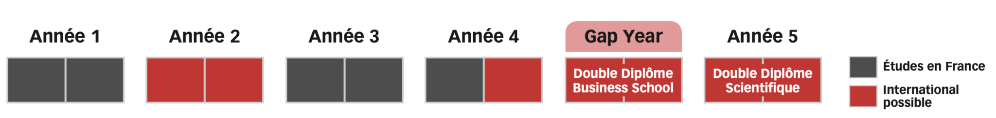 *The 5th year is completed as part of a work-study program, which means the student receives a salary and tuition fees are covered by the host company.